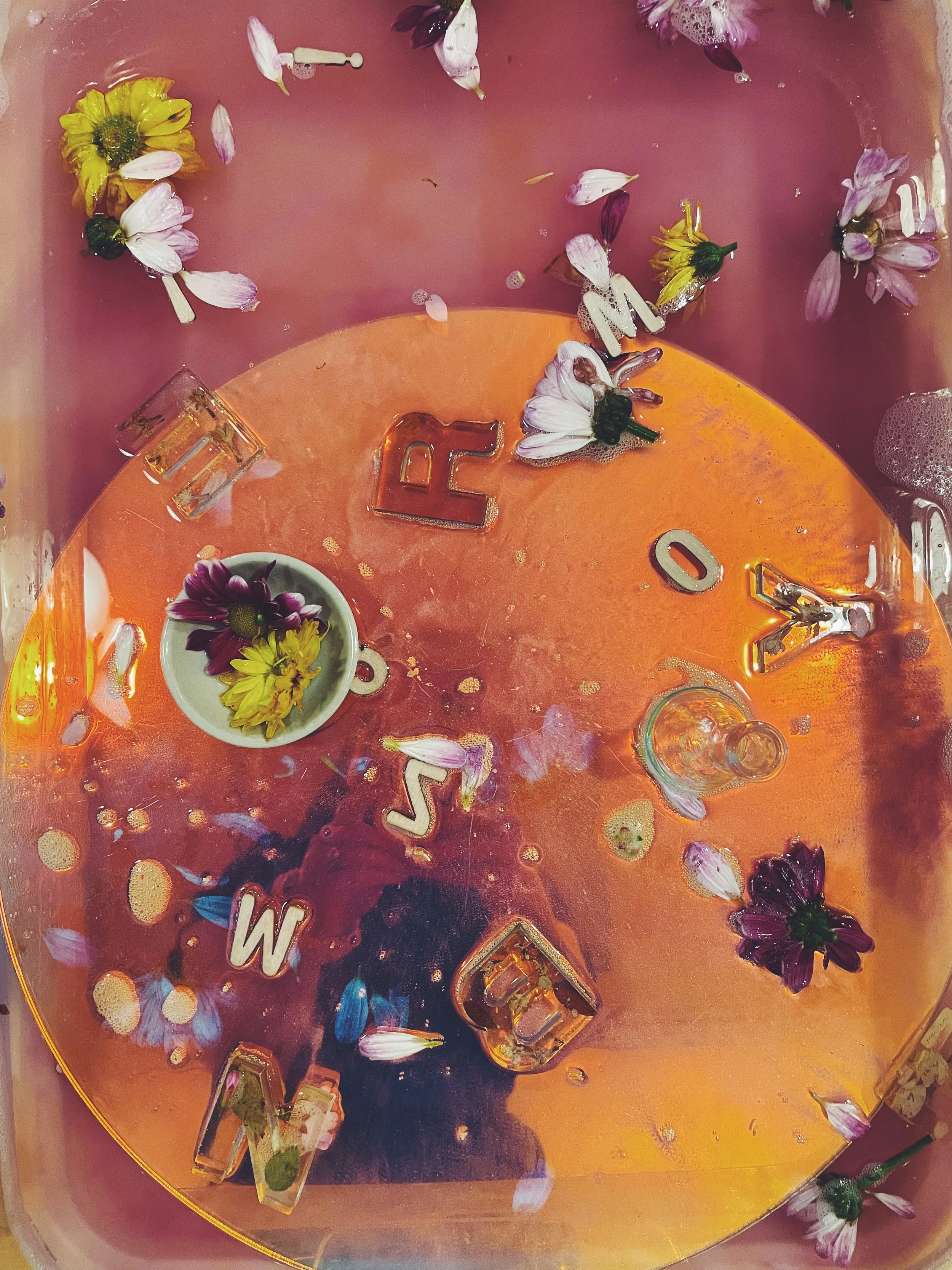 Around the room, I set up a few different stations: painting, a water sensory station, and a building area with salt dough, flowers, and even clementines. The simplicity of the materials really allows the children to lead—and they always come up with more than I could have imagined.